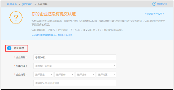 产品激活之后,需要进行企业认证,为日后给客户提供更优质的服务。
