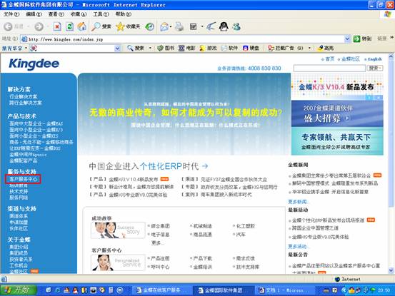 1.您可以登陆到金蝶网站www.kingdee.com的客户服务中心。见红色标记。