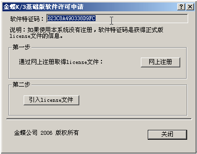 收到注册码文件后,请到K/3基础版中进行注册。