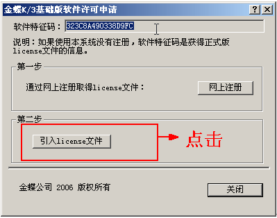 您把注册码文件下载到本地后,还需要将注册码文件导入到金蝶K/3基础版中,以完成最终的注册,具体操作如下: