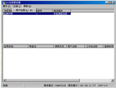 点击KIS加密服务器菜单栏的【注册】——【用户注册】,如下图所示。