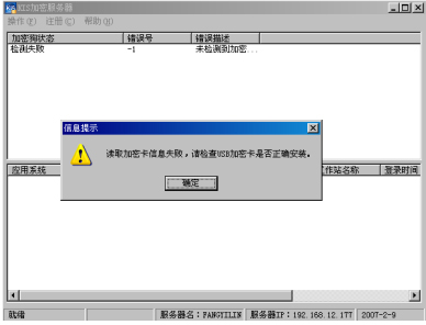 此时请检查您的加密锁是否正确安装。并保证安装无误后进行下一步操作。