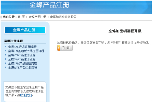 加密锁检查完毕并确认,点击【升级】进行加密锁的升级,如下图所示。
